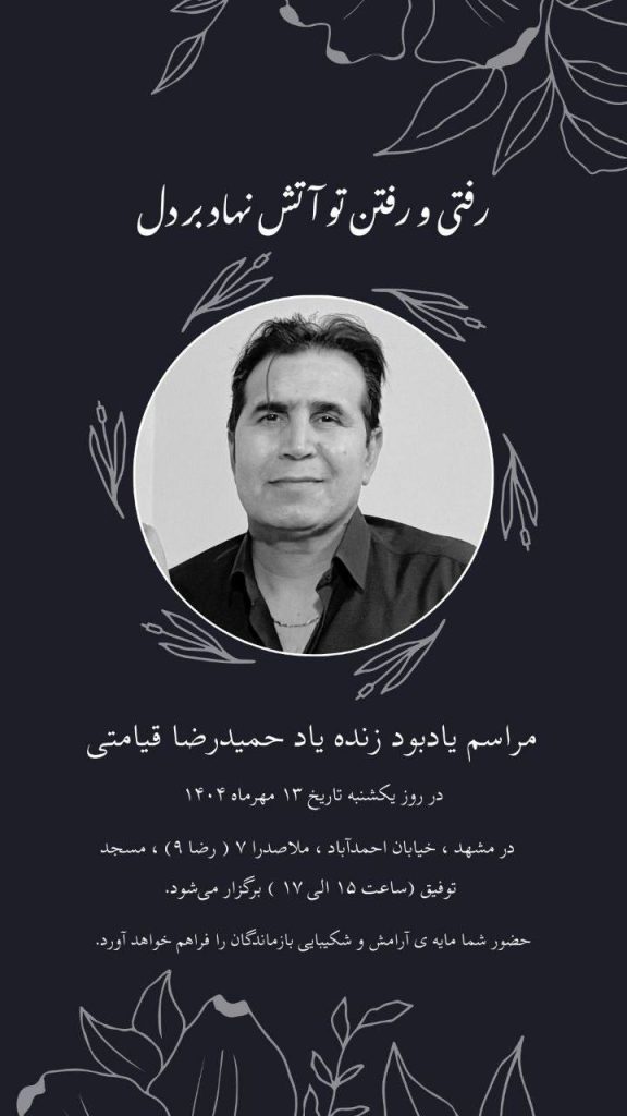 ◾️آیین یادبود زندهیاد حمیدرضا قیامتی