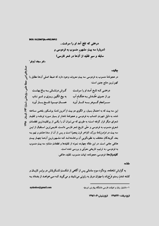 (درباره سه بیتِ منسوب به #فردوسی و سابقه و سیرِ آن ها در #شعر_فارسی).
